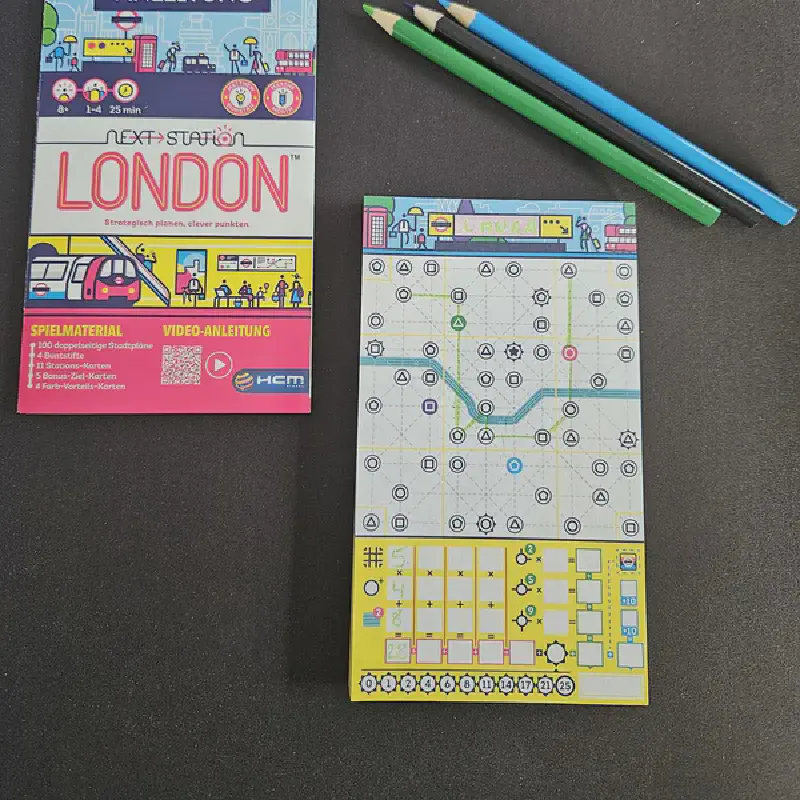 U-Bahnen und Straßenbahnen haben irgendwie Flair. Das haben sich bestimmt auch die Macher der Next-Station-Reihe gedacht. In diesen Flip-and-Write Spielen erschaffen alle Mitspieler ihren eigenen individuellen U-Bahn-Plan von London. Wer lieber durch Paris oder Tokyo reist, kann natürlich auch die entsprechende Version des Spiels der anderen Städte ausprobieren.