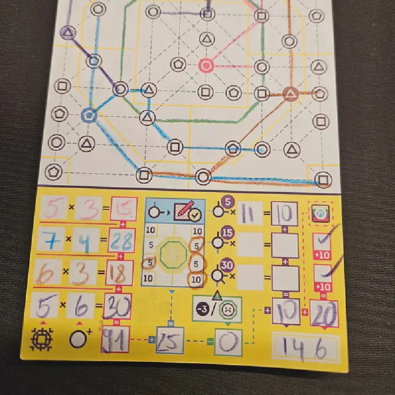 Punkte gibt es direkt nach jeder abgeschlossenen U-Bahn-Linie. Der Stadtplan ist in Sektoren unterteilt, von denen möglichst viele von einer U-Bahn-Linie angefahren werden sollten. Punkte gibt es pro Linie nämlich so viele, wie Sektoren angefahren wurden, multipliziert mit der Anzahl der Stationen, die maximal in einem Sektor angefahren wurden. Klingt kompliziert, ist es aber gar nicht.